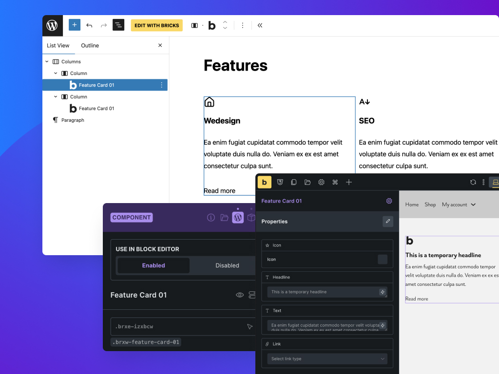 Bricks Builder is all in one WordPress page builder that creates SEO optimized websites with ease. With Bricks, you can design every part of your WordPress website, including custom headers, footers, landing pages, and blog templates, without relying on bloated themes or multiple plugins. It generates clean, semantic code that improves your Core Web Vitals and helps your site rank higher on Google search results.